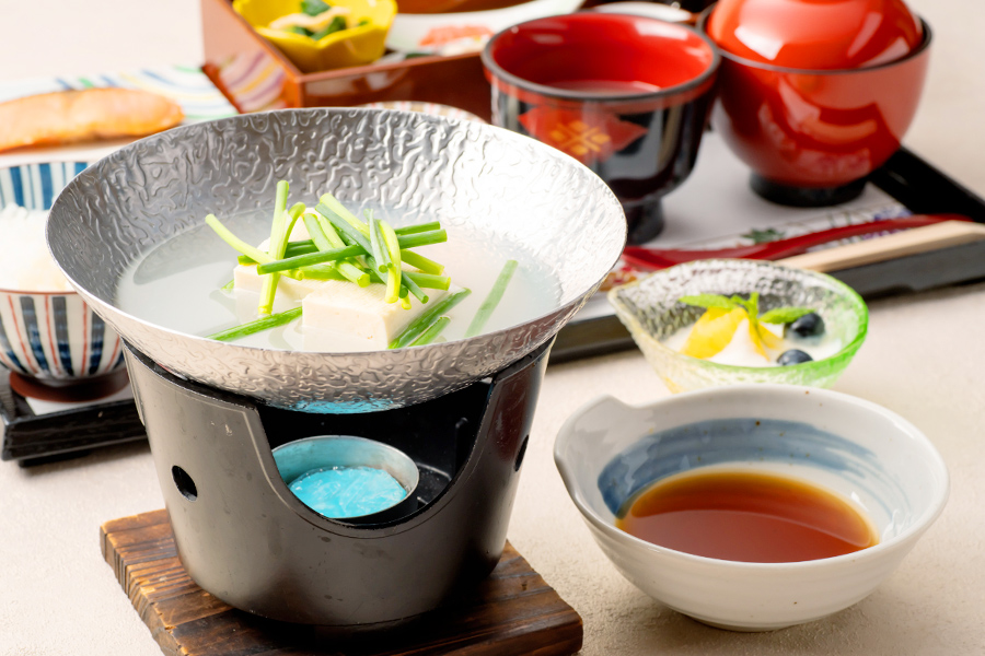 奈良の地で親しまれてきた「茶がゆ」をはじめ素材からこだわった湯豆腐など、丁寧に仕立てたご朝食をご用意しています。