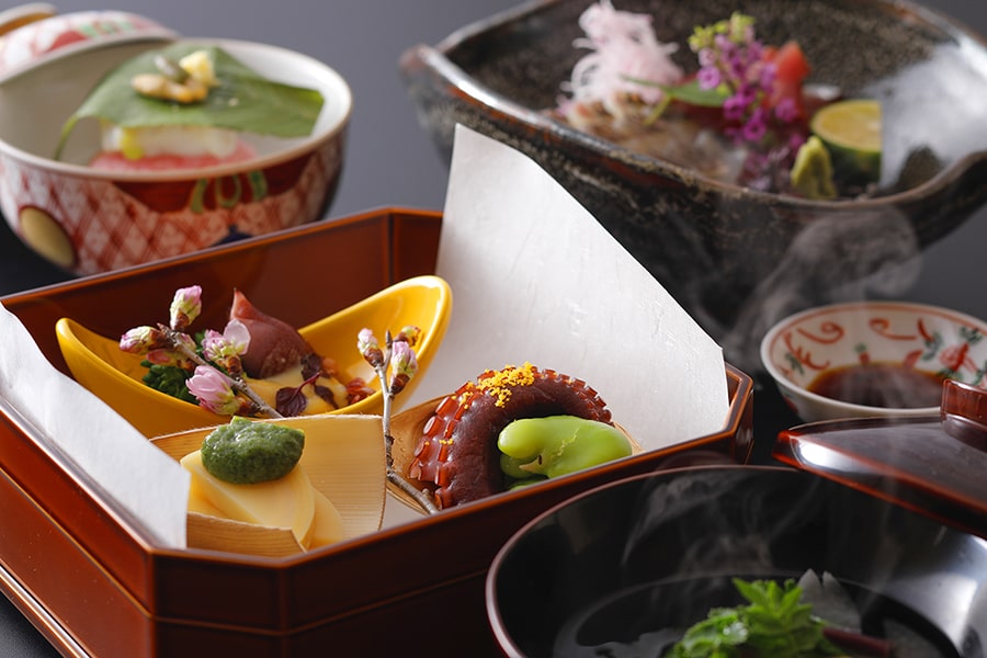 歴史を感じる土地のものを卓越した目利きと繊細な技術で仕上げたお料理の数々をお愉しみください。